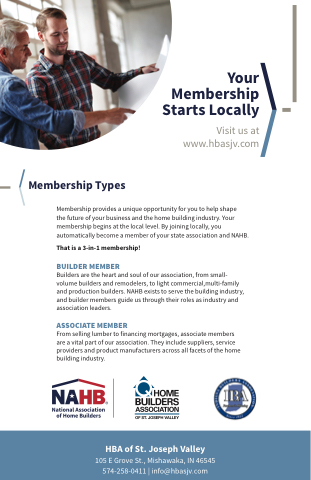 the future of your business and the home building industry. Your membership begins at the local level. By joining locally, you automatically become a member of your state association and NAHB.