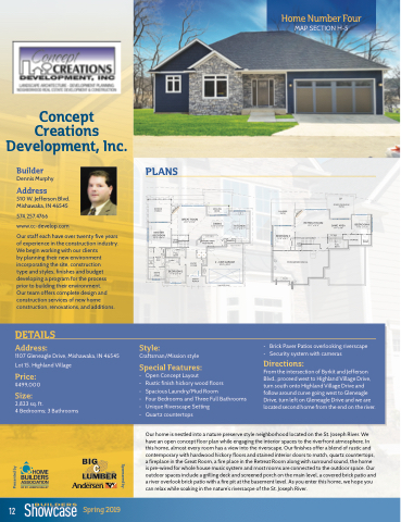Our home is nestled into a nature preserve style neighborhood located on the St. Joseph River. We have an open concept floor plan while engaging the interior spaces to the riverfront atmosphere. In this home, almost every room has a view into the riverscape. Our finishes offer a blend of rustic and contemporary with hardwood hickory floors and stained interior doors to match, quartz countertops, a fireplace in the Great Room, a fire place in the Retreat Room along with surround sound, the home is pre-wired for whole house music system and most rooms are connected to the outdoor space. Our outdoor spaces include a grilling deck and screened porch on the main level, a covered brick patio and a river overlook brick patio with a fire pit at the basement level. As you enter this home, we hope you can relax while soaking in the nature’s riversacpe of the St. Joseph River.