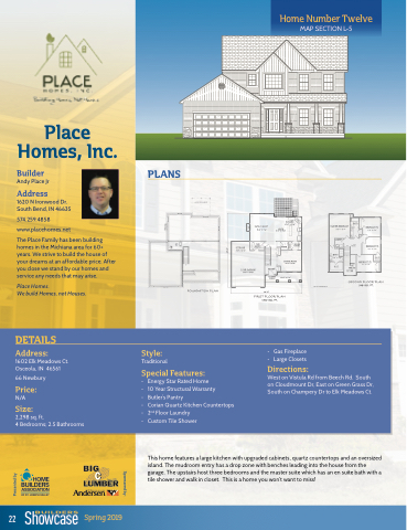 The Place Family has been building homes in the Michiana area for 60+ years. We strive to build the house of your dreams at an affordable price. After you close we stand by our homes and service any needs that may arise.